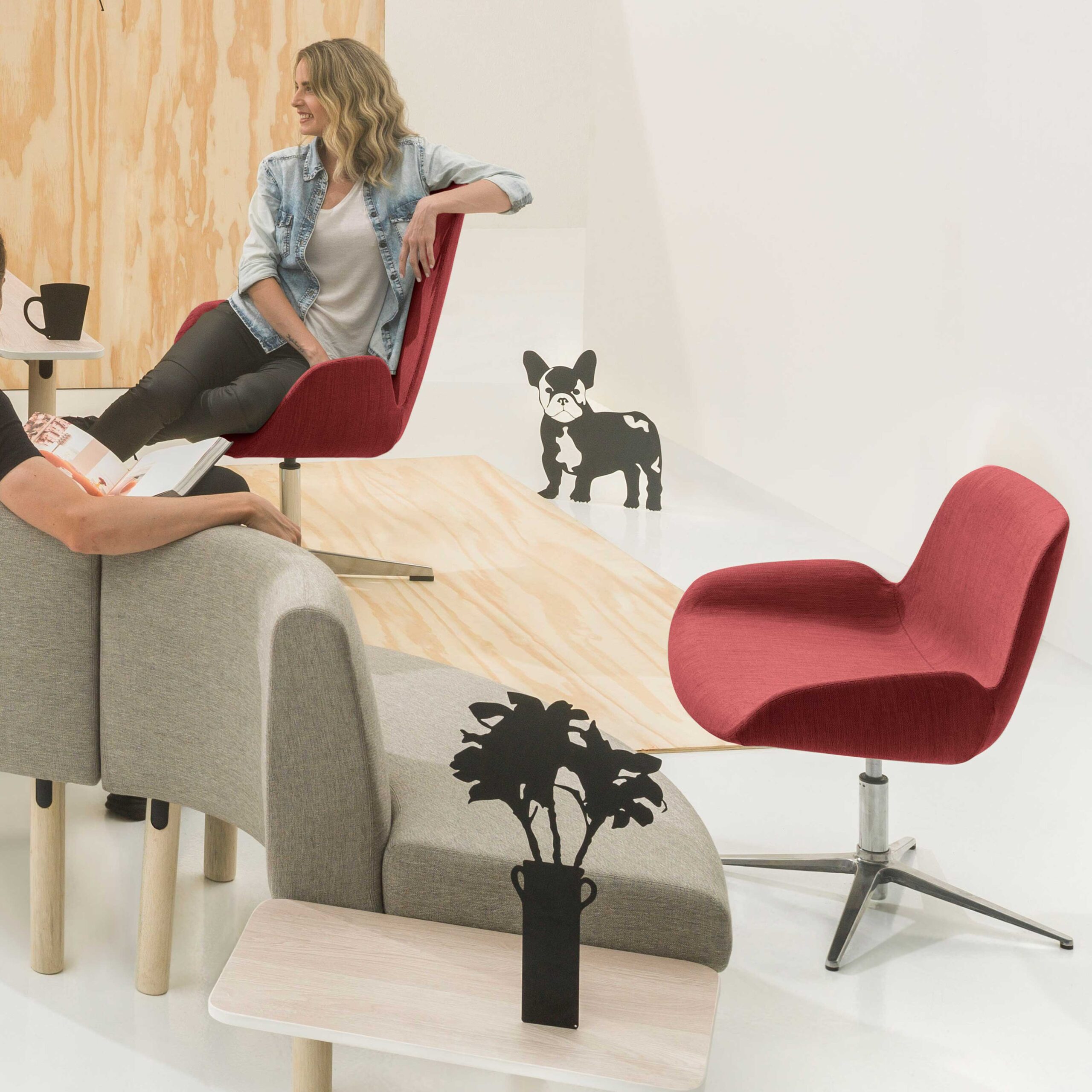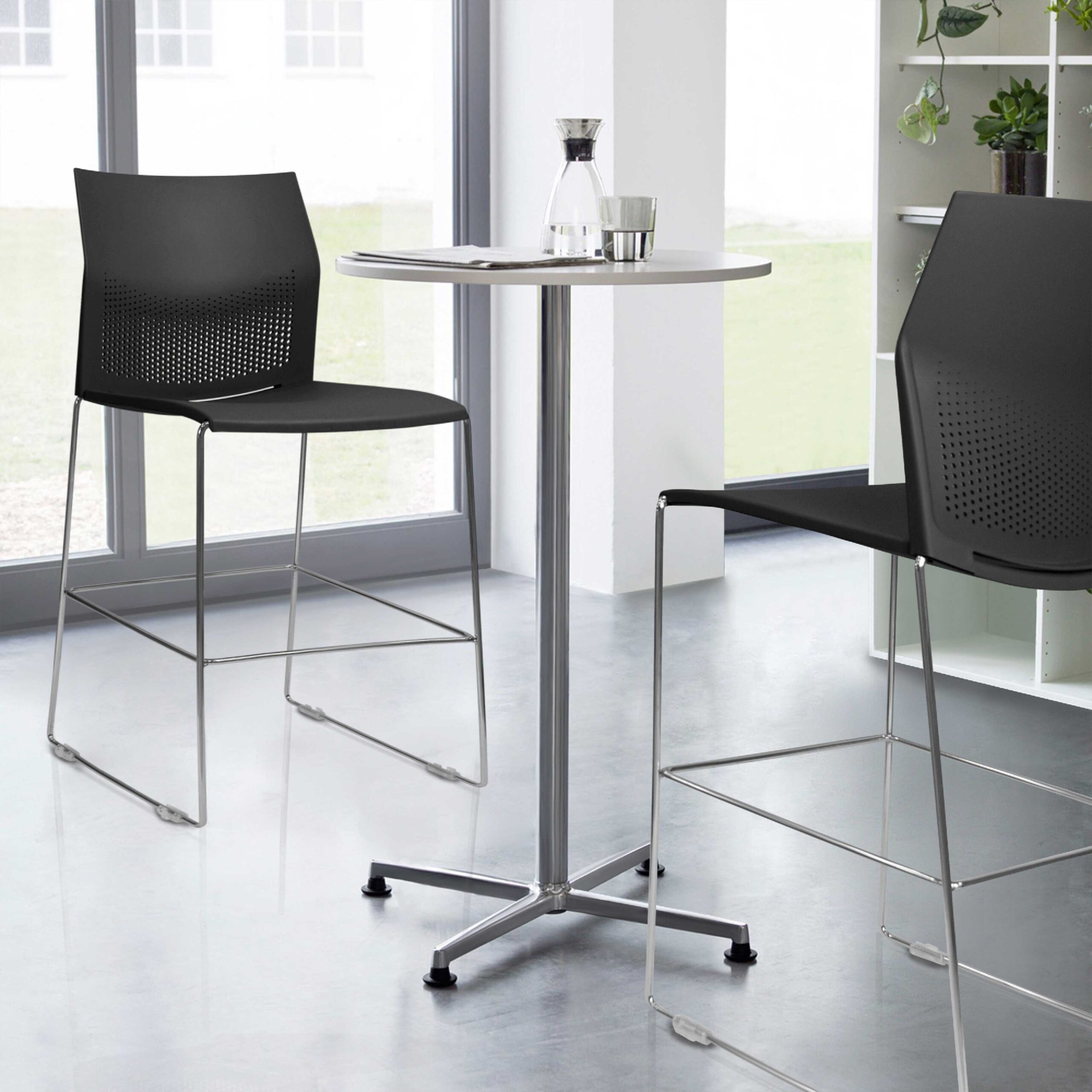 Linha completa de cadeiras e banquetas para espaços colaborativos ou coletivos.